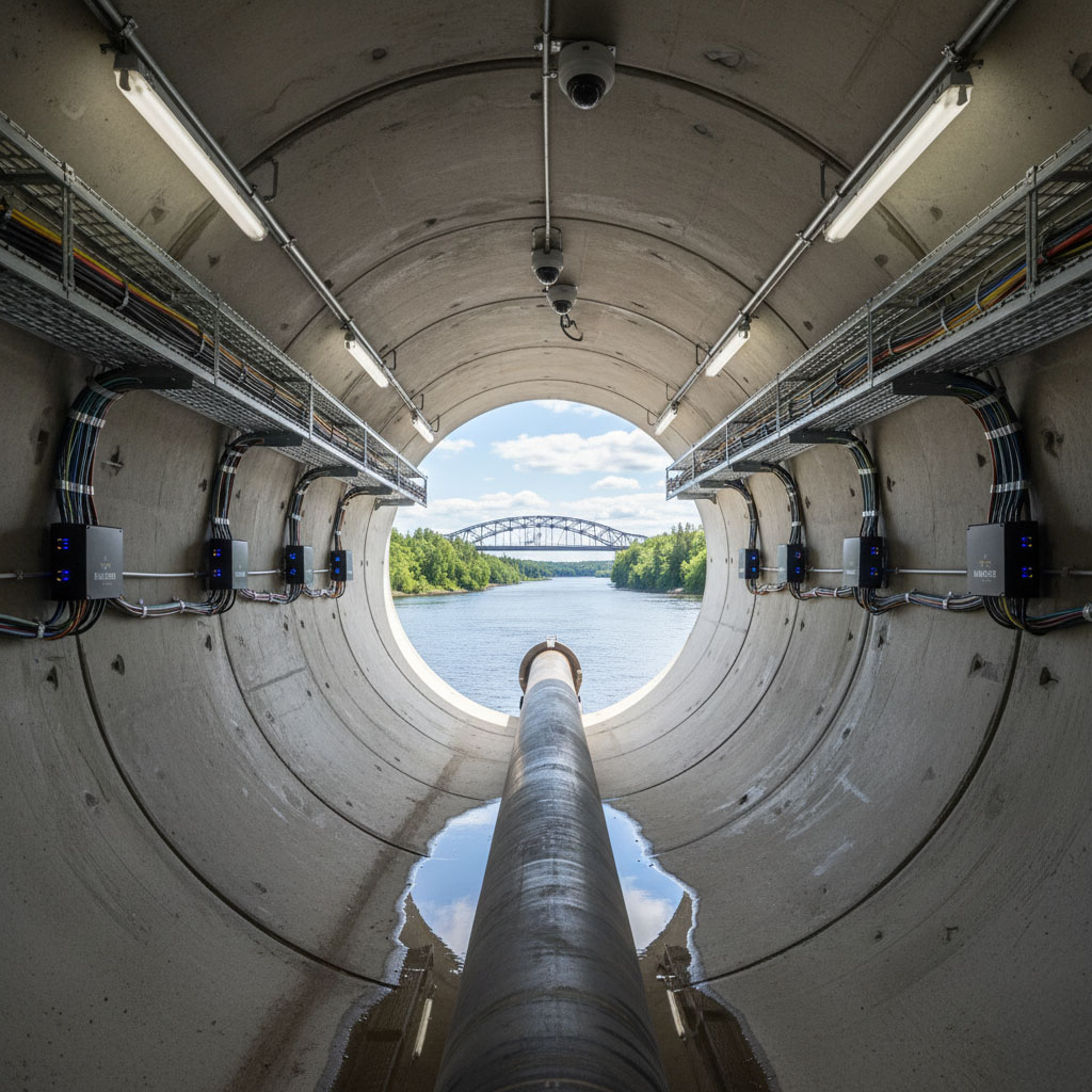 In diesem Vorhaben wurde ein 355 m langer Tunnel mit Ø 914 mm realisiert, in dem HADES als einheitliches System Kommunikation & Datennetzwerk, mobile Telefonie, Gasüberwachung und Videoüberwachung vereinte. Besonders anspruchsvoll war die Kombination aus relativ schmalem Querschnitt und der Notwendigkeit simultaner Gas- und Sicherheitsüberwachung bei lückenloser digitaler Verbindung. HADES kam dabei als redundantes Backbone zum Einsatz, das alle Sprach-, Daten-, Video- und Sensorikmodule mit hoher Ausfallsicherheit und minimaler Latenz vernetzte – zuverlässig selbst unter herausfordernden Bedingungen.